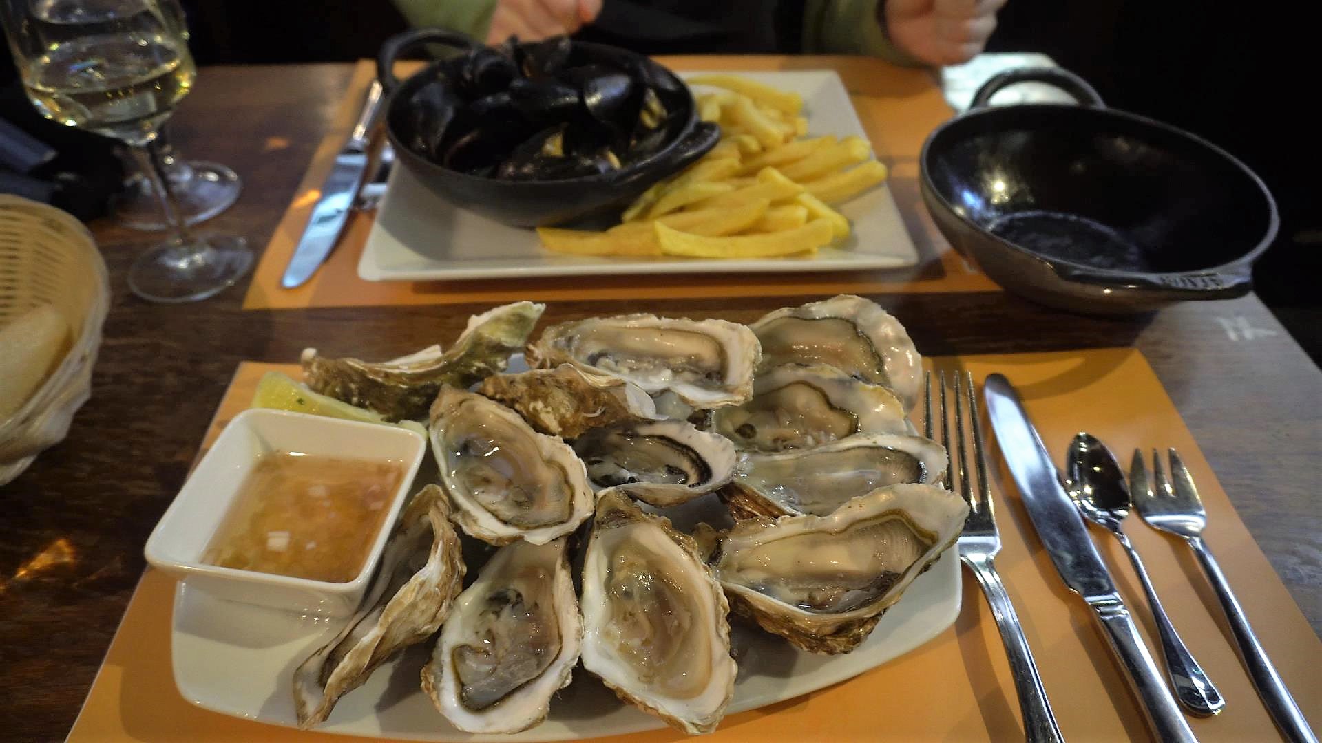 シーフード定番のムール貝と生牡蠣をいただきました。